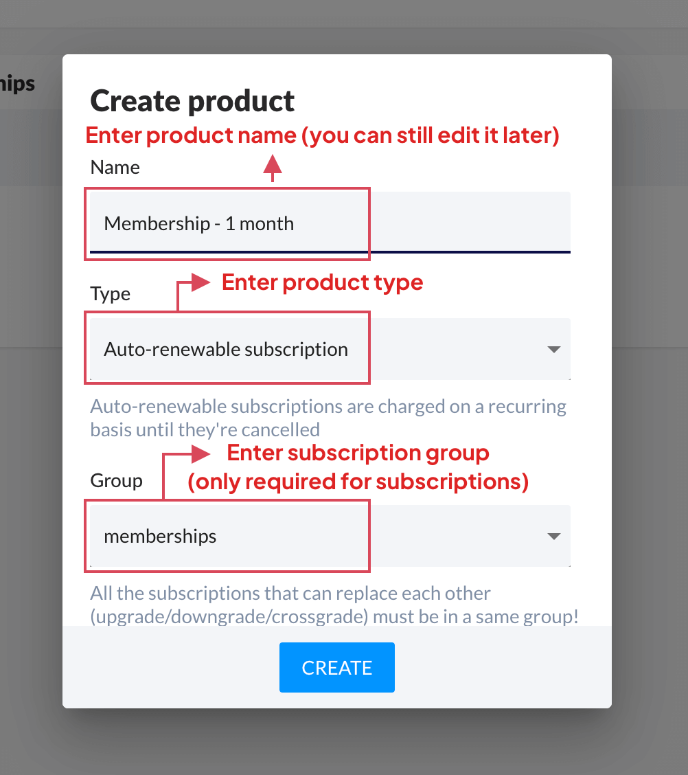 If you're creating a subscription and you don't already have a subscription group, you should create a group (more information about subscription groups here).