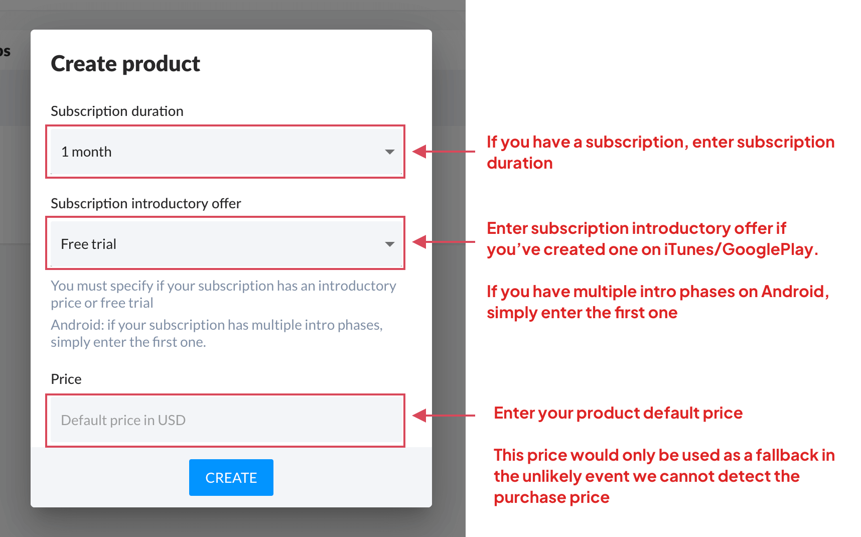 For subscriptions only: enter the subscription duration and the introductory offer (if you have one). If you have multiple introductory offers on Android, simply enter the first one.
