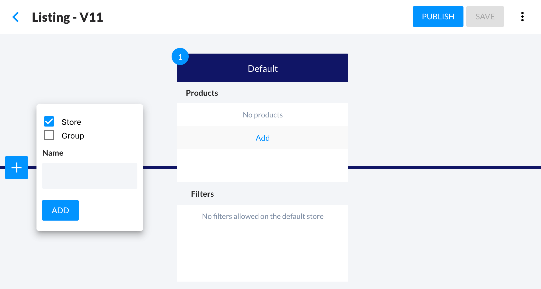 - Default Store: This is the primary store selected by default if no other store is chosen. Having a smart listing with only one default store is essentially the same as having a basic listing. That's why no filter is allowed on the default store.