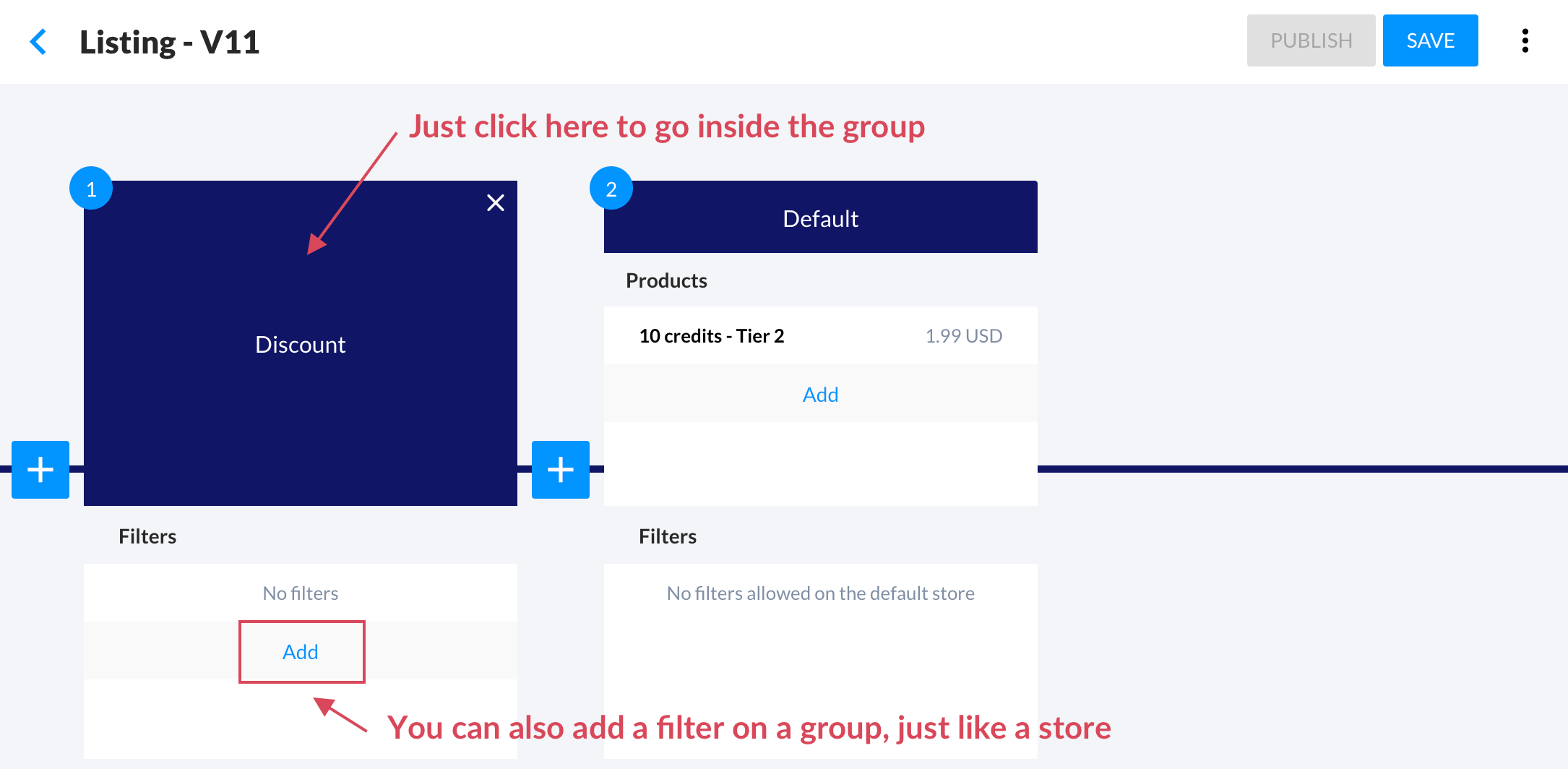 Additionally, you can apply filters to a group, functioning similarly to a store. Clicking on the group allows you to navigate inside.