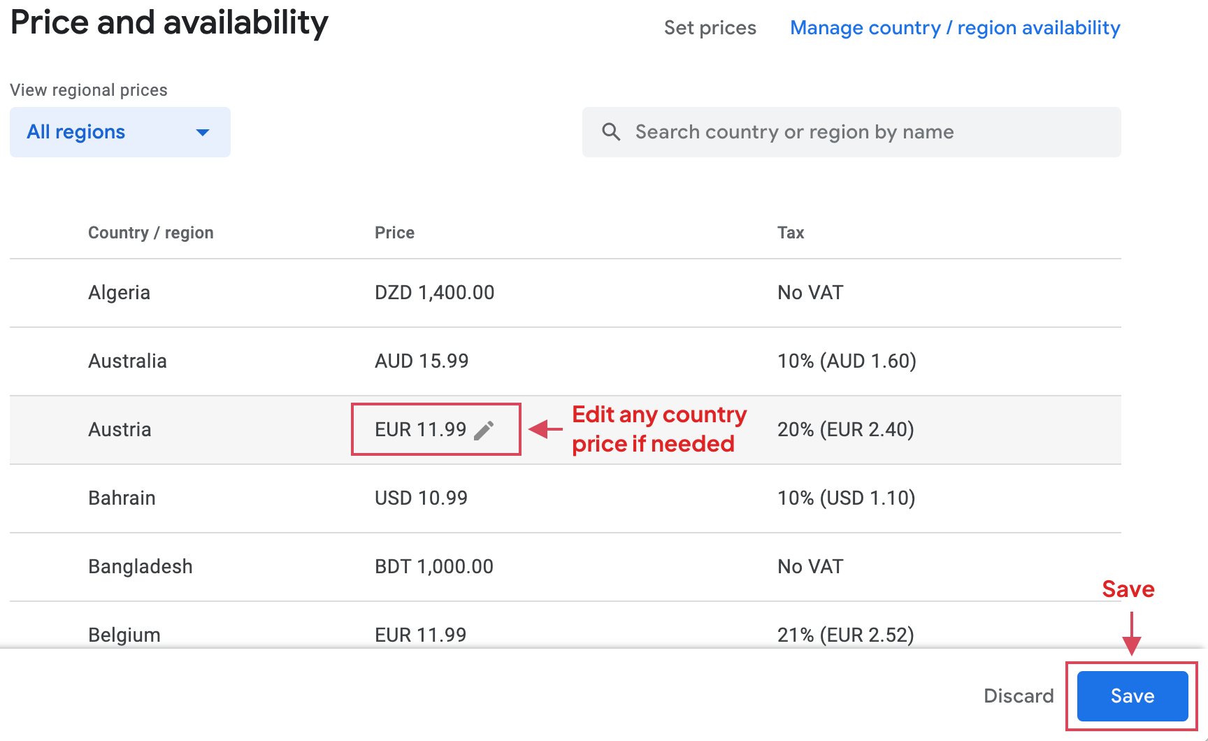 Also enter the subscription duration and the grace period duration (when the subscription cannot renew, Google keeps the subscription active for a certain time to allow retrying the subscription renewal again before cancelling it).