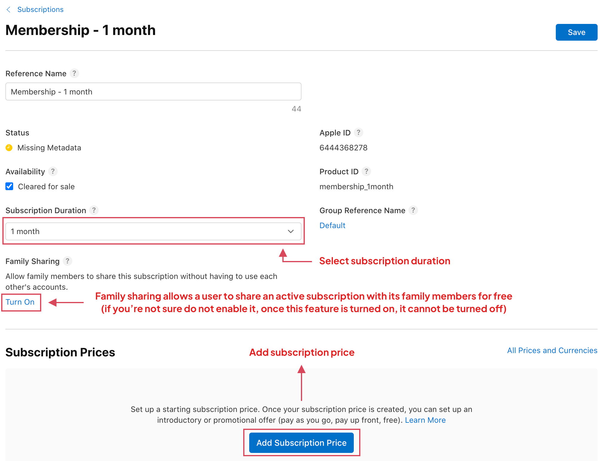 To create a new auto-renewable subscription, go to your app on App Store connect.