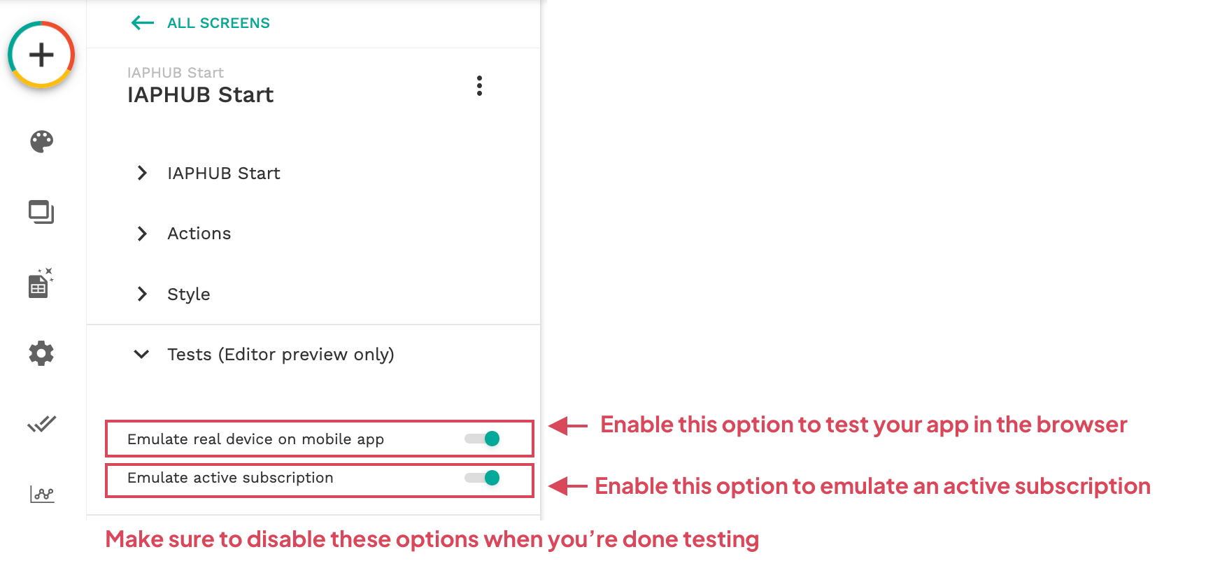 Make sure to disable these options when you're done testing.